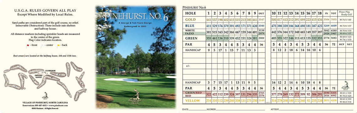 In 1975, PGA professional golfer Tom Fazio and his course designer uncle, George, set out to create a course in the heart of Pinehurst yet distinctly set apart in its own style. The result was No. 6, an undulating track that rewards big, bold drives and requires more aggressive approach shots. The course was renovated in 2005 to anchor it aesthetically to Pinehurst, even as it continues to carve out its own reputation.