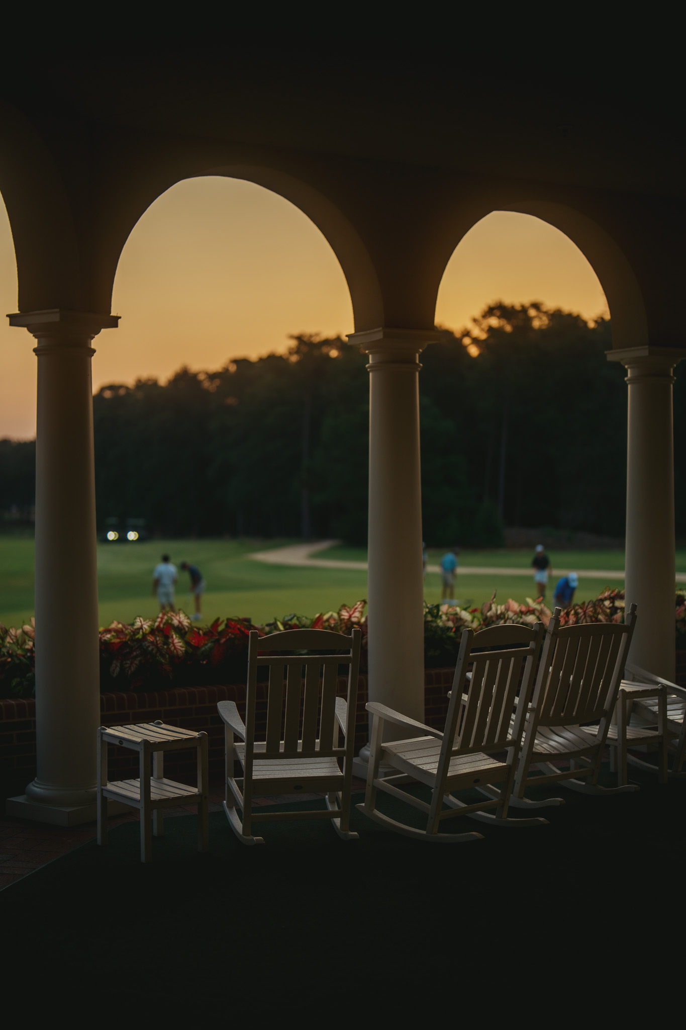 Eleven minutes later, they gathered near the same spot, the grouping following him now on the green to finish their rounds. Rinse. Lather. Repeat. The friends and family had emerged from the shade of the veranda and the coolly conditioned restrooms of the clubhouse to regroup, returning into the sun, back on the grass near the drop zone at the crook of the brick pathway.